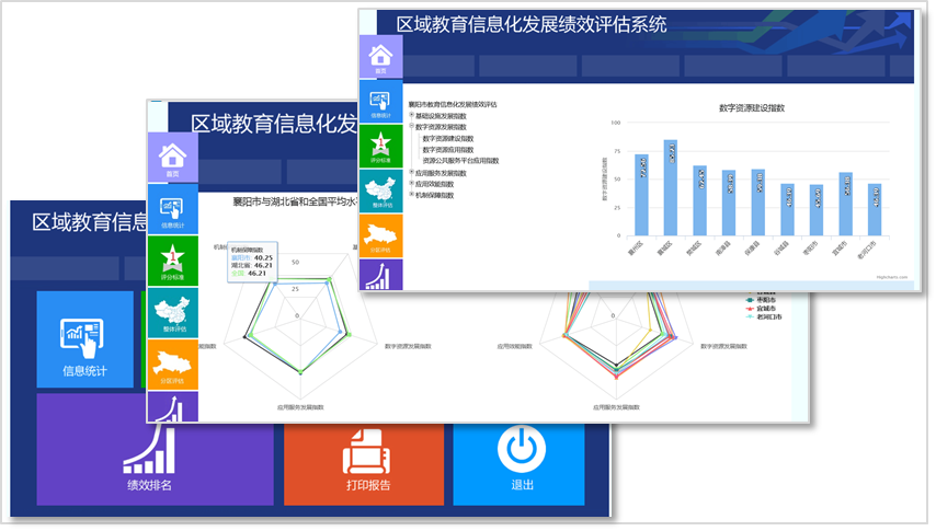 在教育信息化发展水平评估方面,中心受湖北省教育厅委托,承担全省教育信息化发展绩效评估任务,研发区域教育信息化发展绩效评估系统并成功投入实践应用,为湖北省教育信息化发展状态监测评估和决策支持提供了重要支持平台。