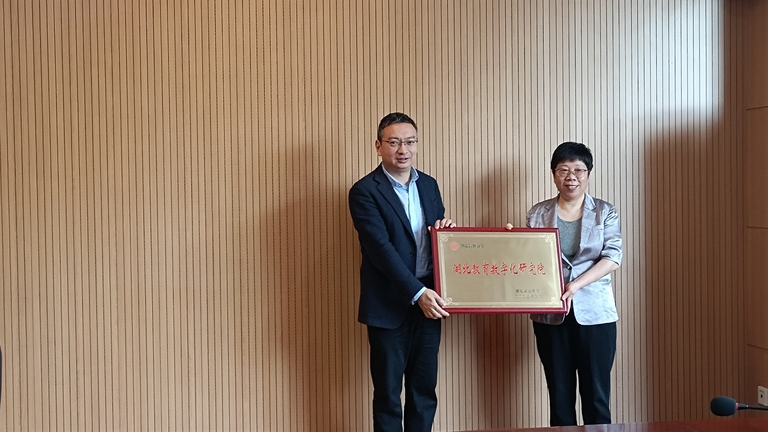 周厅长为部分咨询委员会委员颁发聘书并为六个教育研究院授牌。彭南生副校长作为研究院所在高校负责人在会上进行发言,表示感谢省教育厅的信任,华中师范大学将对湖北教育数字化研究院的建设予以高度重视和支持,确保研究院结出丰硕成果,成为本学科领域具有国内领先水平的教育智库。