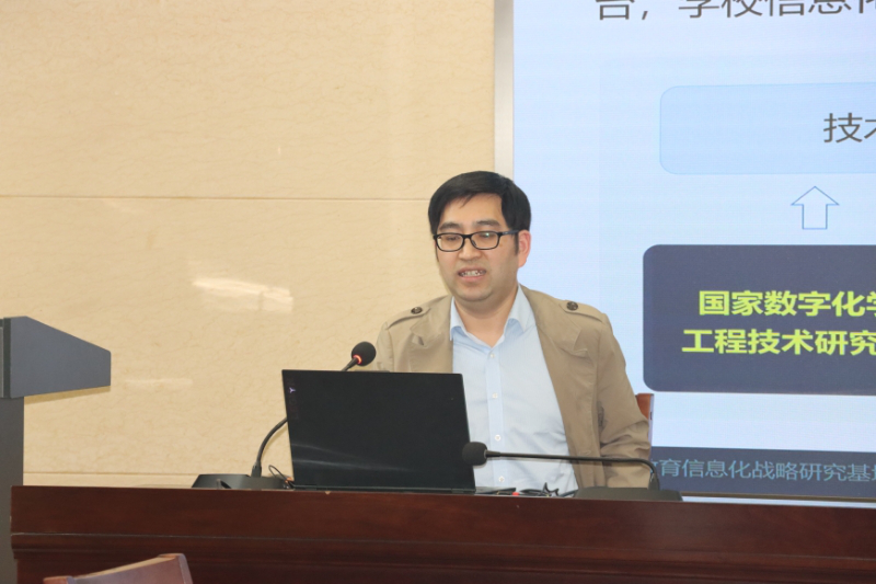 上午,钟正副教授前往宜昌市西陵区唐家湾中小学开展实地调研。下午,钟正副教授在宜昌市教育局出席了宜昌市教育数字化重点工作推进会并就“如何培育、选树、推广教育数字化典型案例”作了专题报告。宜昌市教育局党组成员、副局长鲁劲松、各县市区教育局分管局长、信息中心主任,局属各学校相关负责人及钟正副教授在宜昌市教育局开展了座谈,会议围绕宜昌市教育数字化赋能教联体建设现状及思路进行交流。