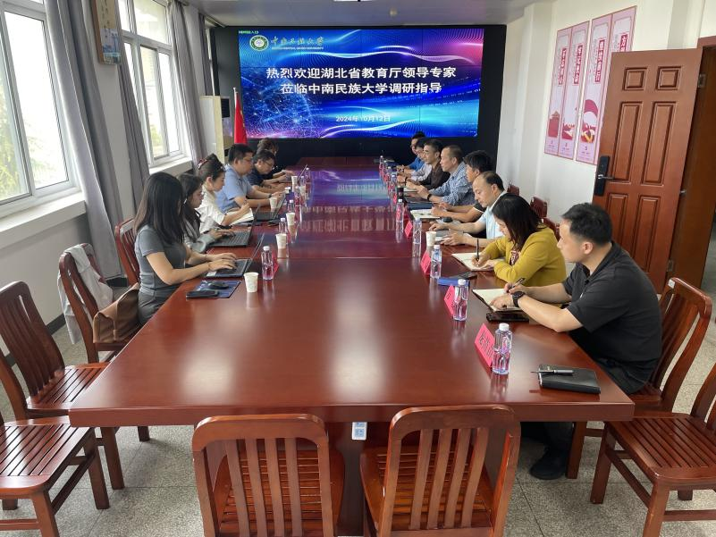 调研现场。朱立明摄信息化建设管理处处长张淼对吴龙凯教授一行来访表示热烈欢迎,感谢省教育厅对中南民族大学的重视,并表态学校信息化部门将全力配合调研组高质量完成调研工作。随后,信息化建设管理处副主任舒振宇全面介绍了学校数字化转型工作,重点介绍了学校数字化育人环境、智慧教学、智慧管理、数字化转型保障机制等方面内容,以及在教育数字化战略行动推进中的典型经验做法,在推进数字化工作中存在的短板,并对推进全省高校教育数字化工作提出具体建议。省教育厅专家舒江波教授建议学校要以应用为导向,做好相关系统、平台用户数据的统计、分析及展示工作。